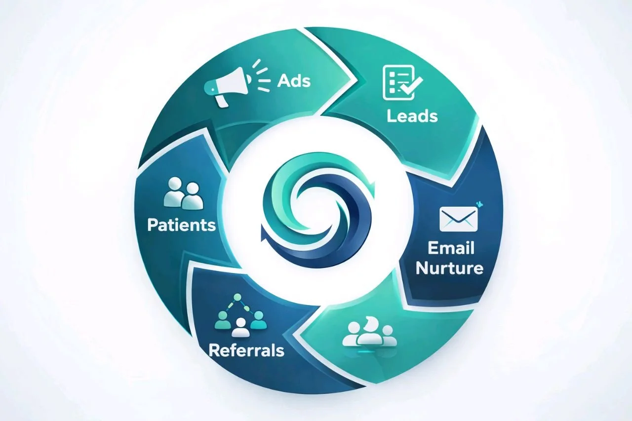 • A complete marketing system designed to build and nurture an audience YOU own. By combining paid targeted advertising, organic content, email marketing, and automated follow-up, this system turns attention into long-term relationships that consistently generates new patients.